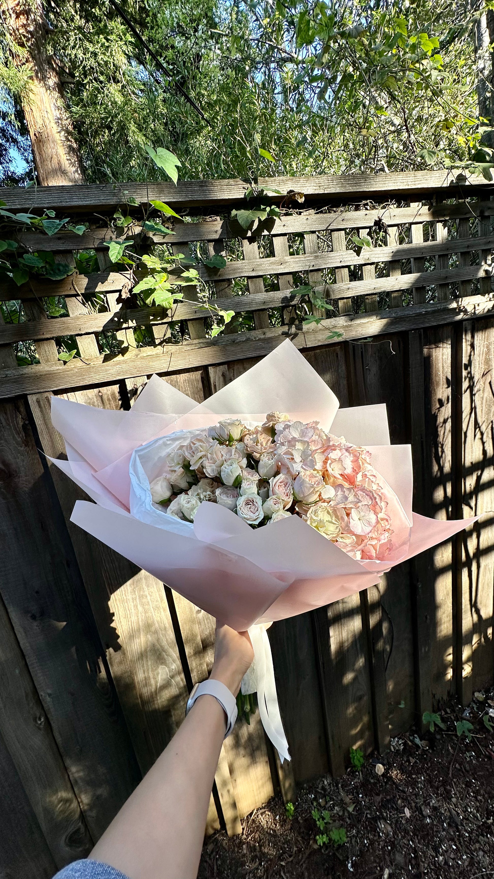 While we strive to create bouquets as similar as possible, please note that our selection may vary with the changing seasons.